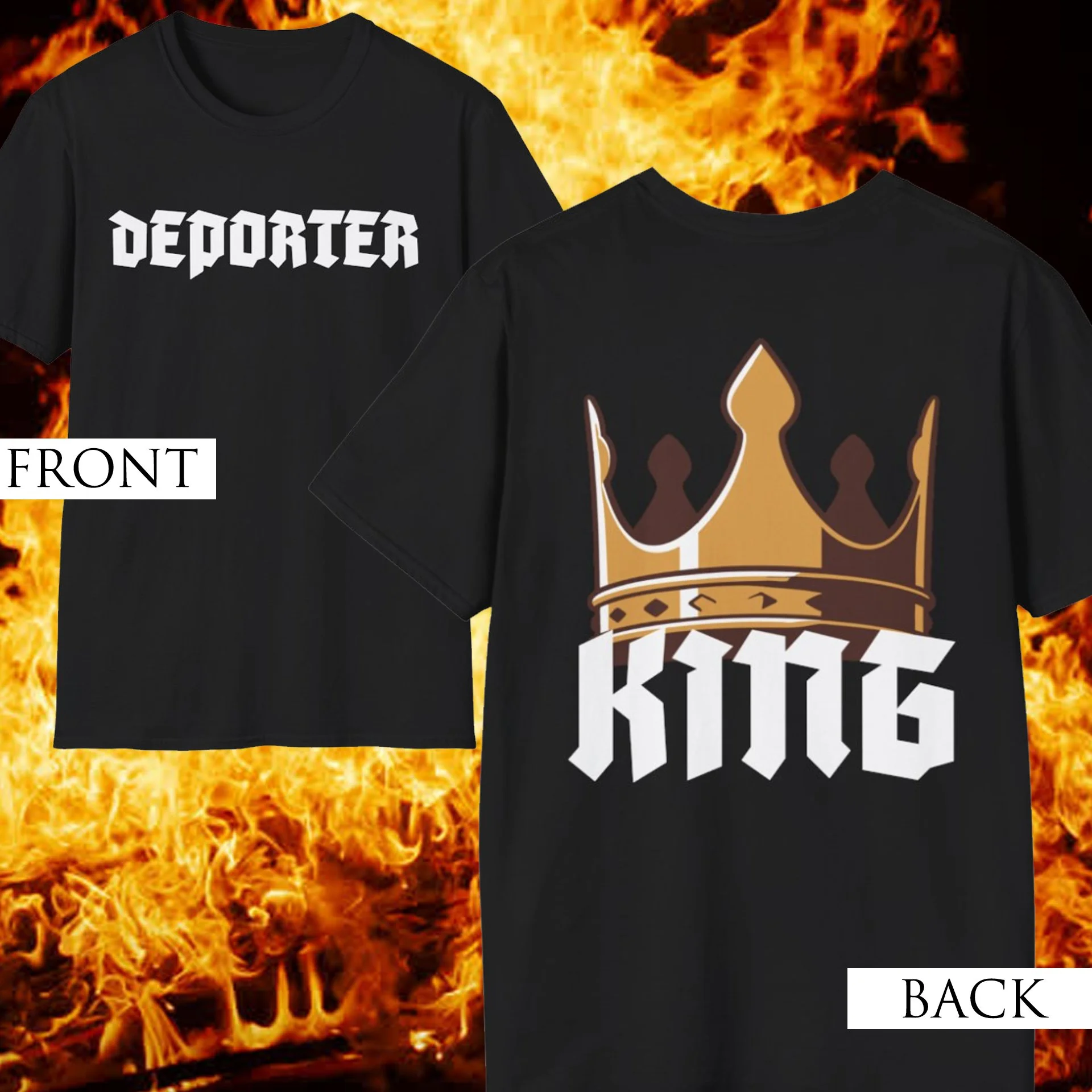 Print is on front of shirt. Back side is blank.