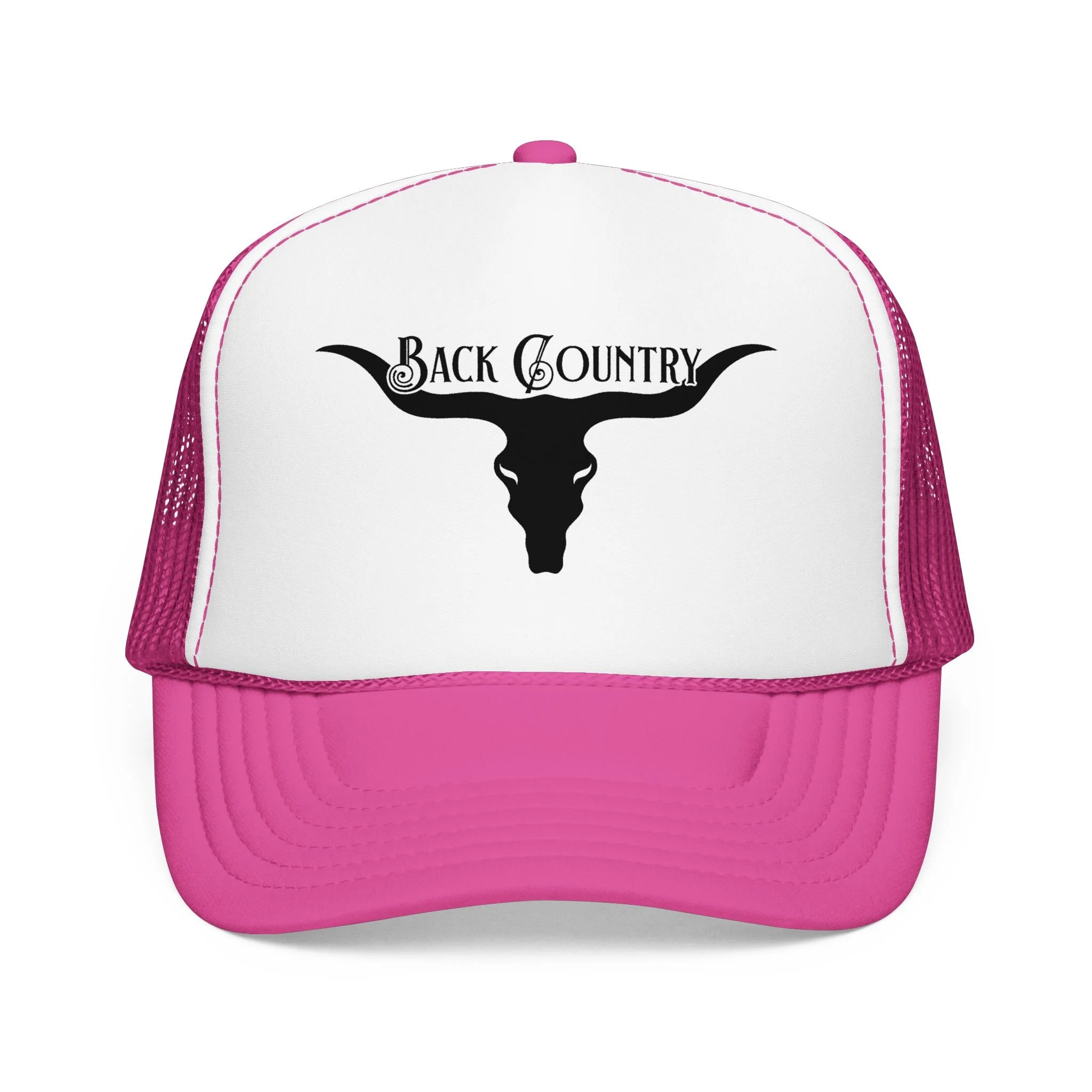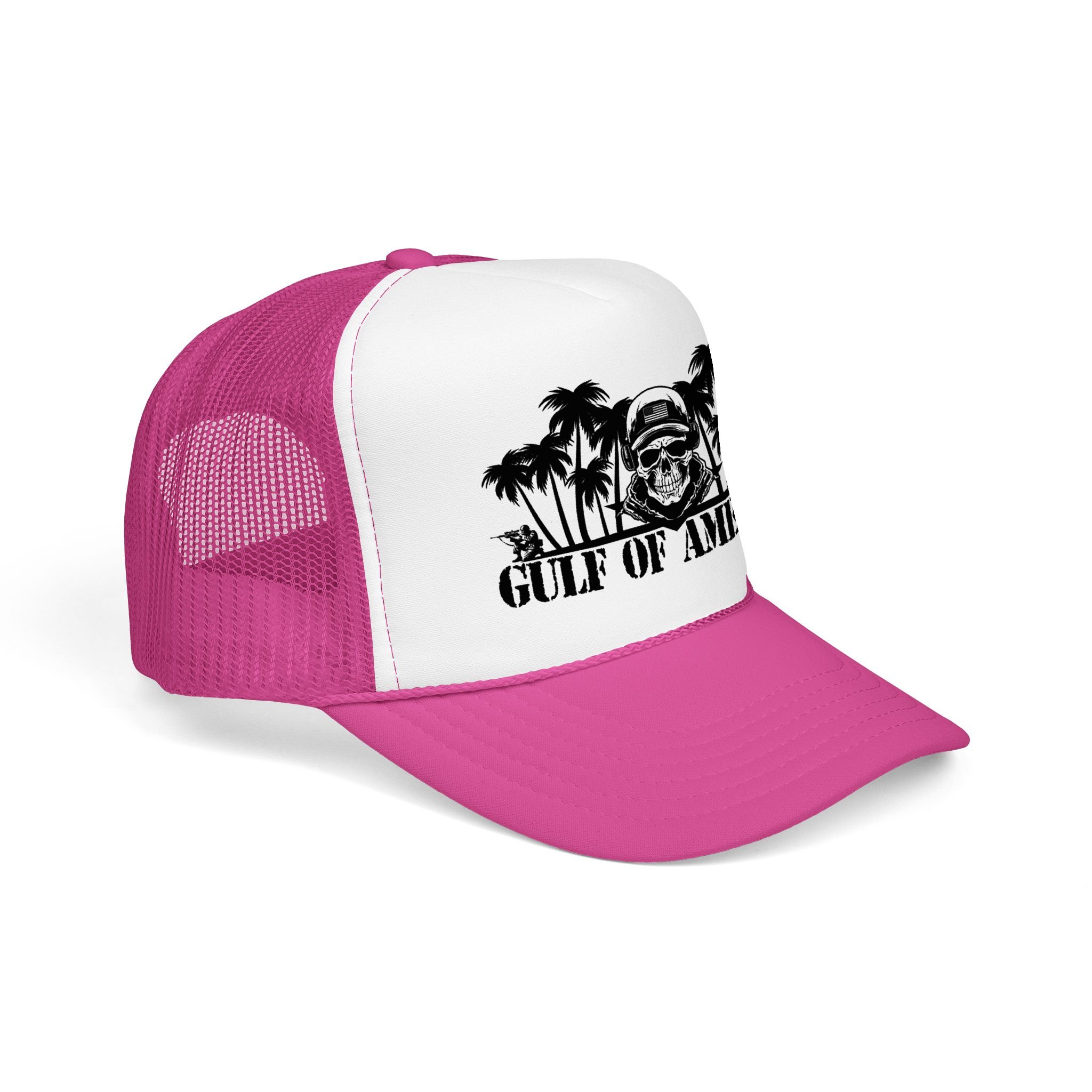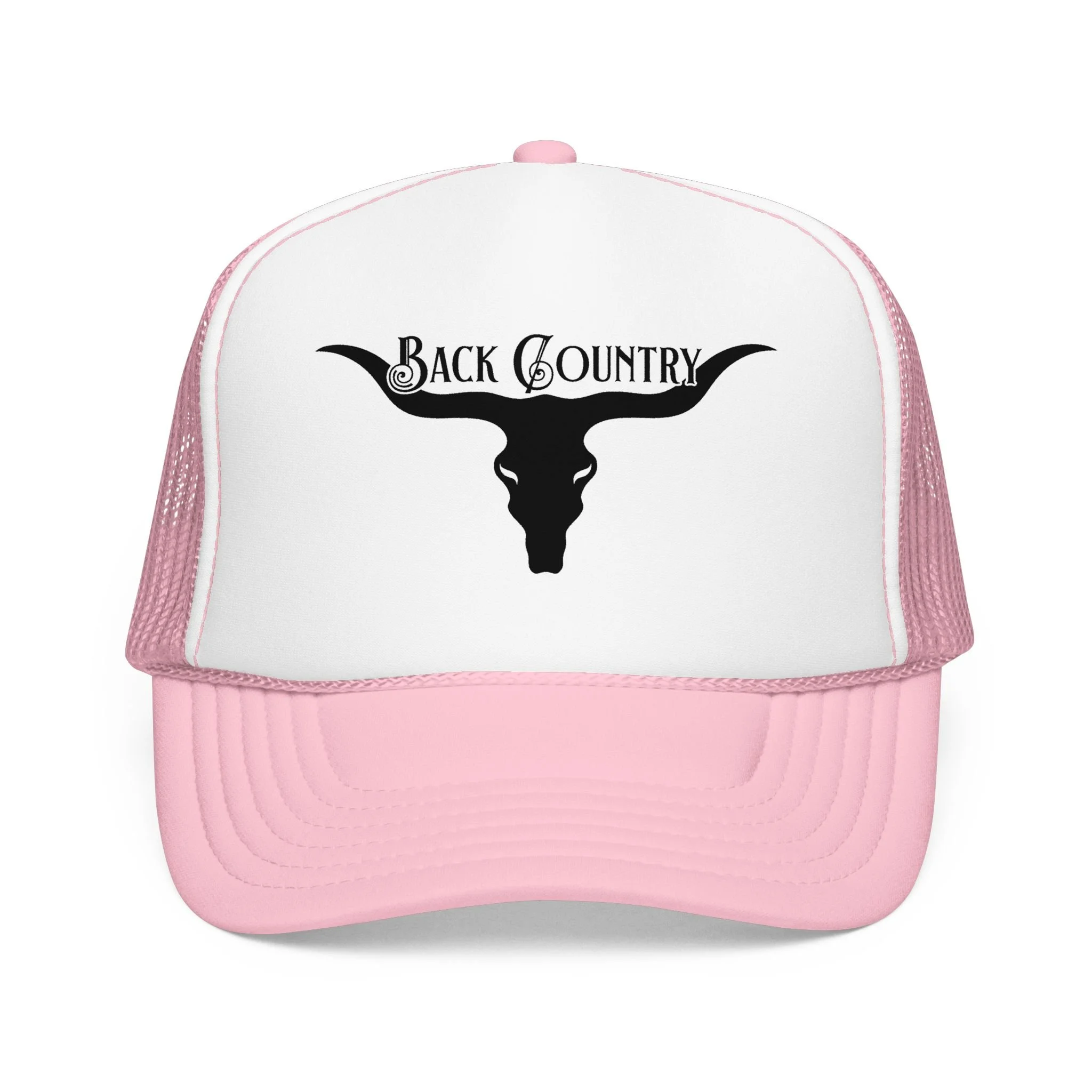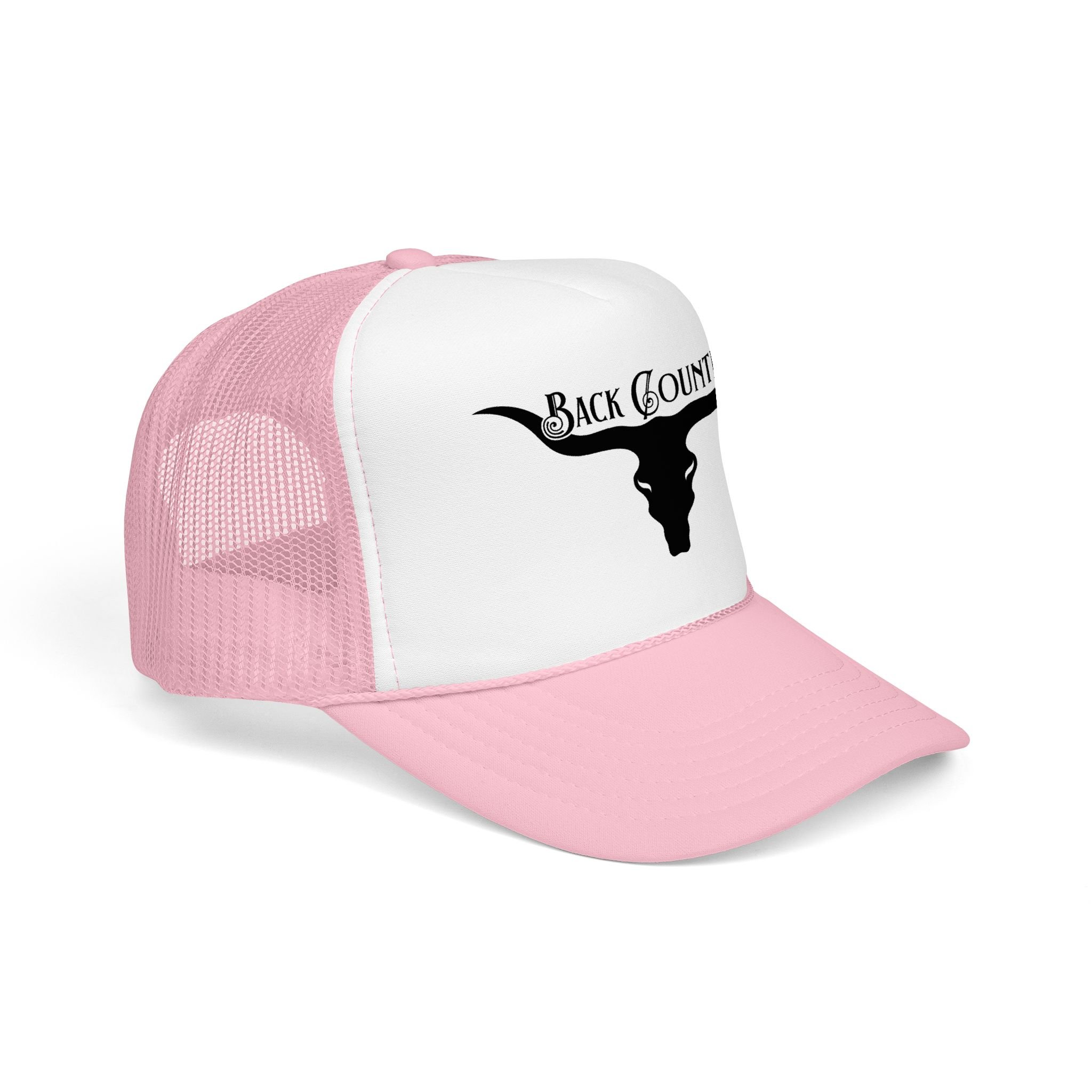 A rugged foam trucker hat that channels underground music energy and late-night jam sessions. The high-profile structured front holds a seamless foam panel where a distressed, dripping logo sits in stark white against black — bold without shouting. Breathable mesh keeps the back cool during long sets or summer shows. The pre-curved visor and adjustable snap let you dial the fit and tilt for stage-ready attitude or laid-back streetwear.