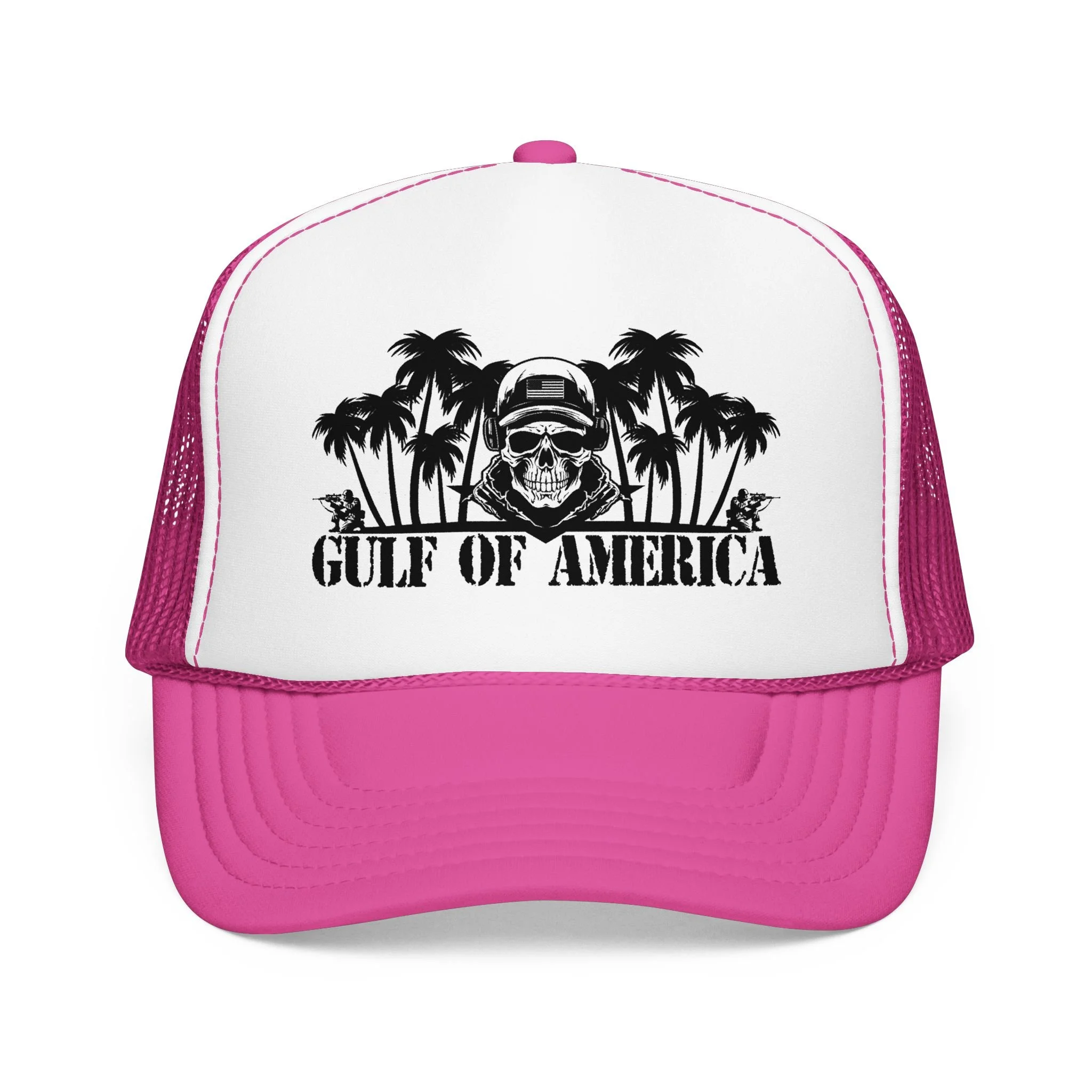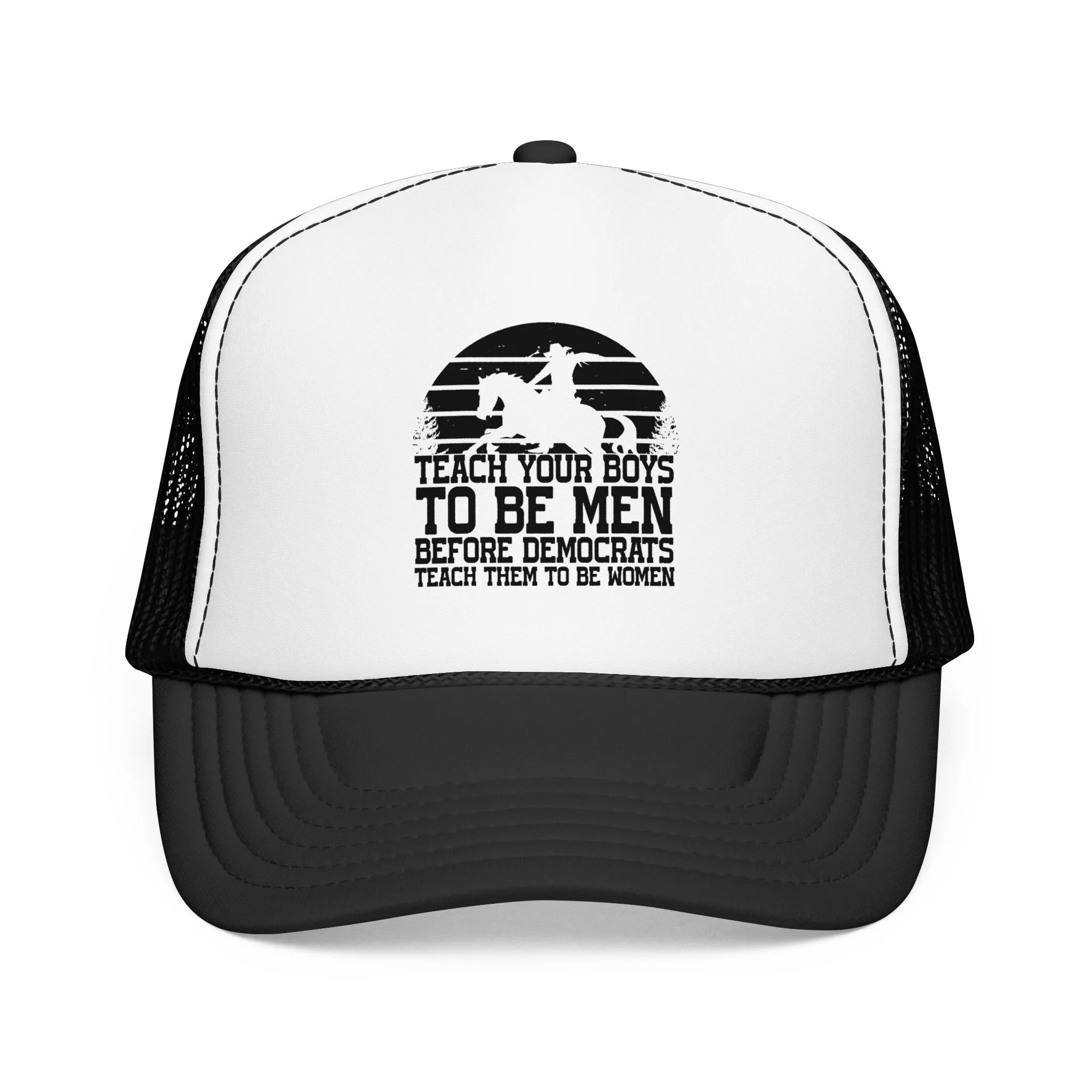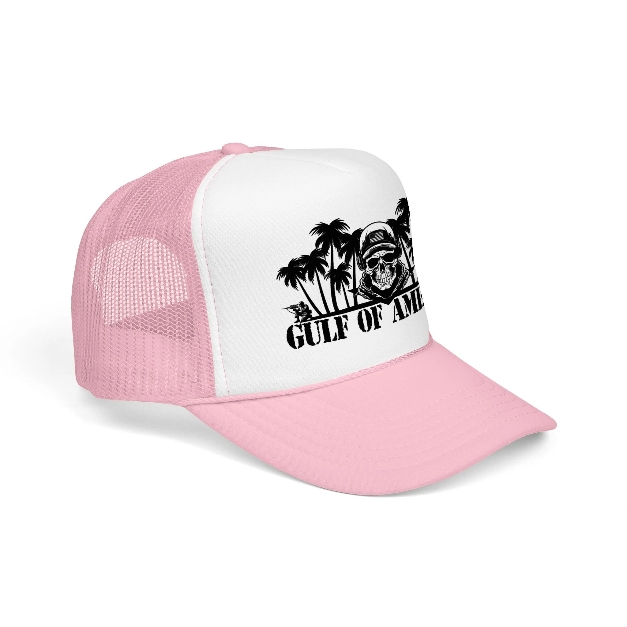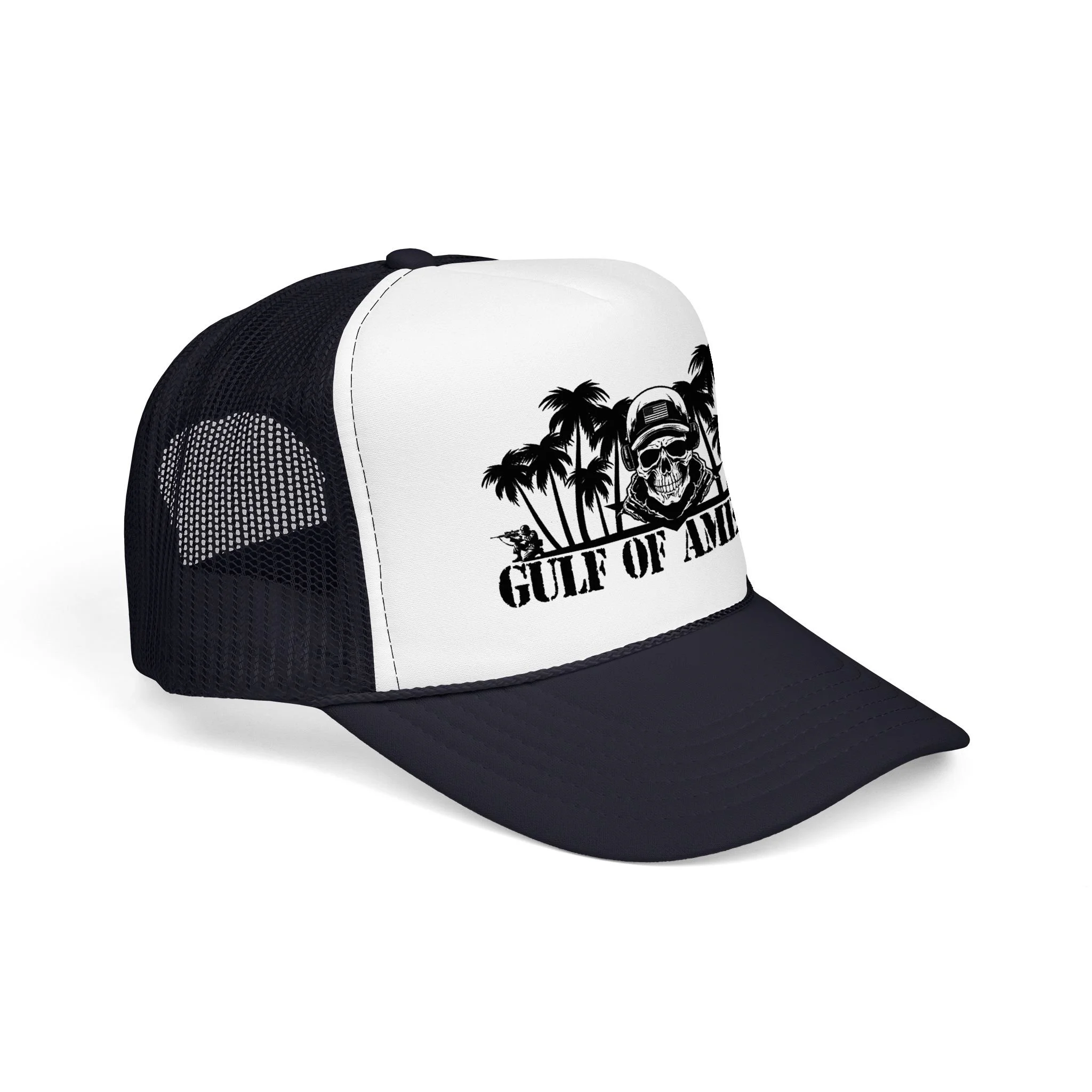 A rugged foam trucker hat that channels underground music energy and late-night jam sessions. The high-profile structured front holds a seamless foam panel where a distressed, dripping logo sits in stark white against black — bold without shouting. Breathable mesh keeps the back cool during long sets or summer shows. The pre-curved visor and adjustable snap let you dial the fit and tilt for stage-ready attitude or laid-back streetwear.