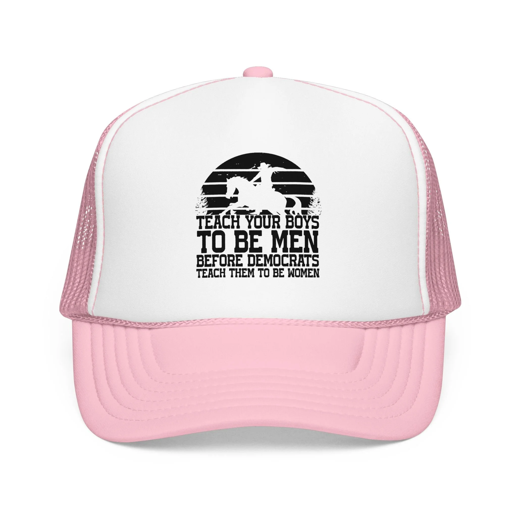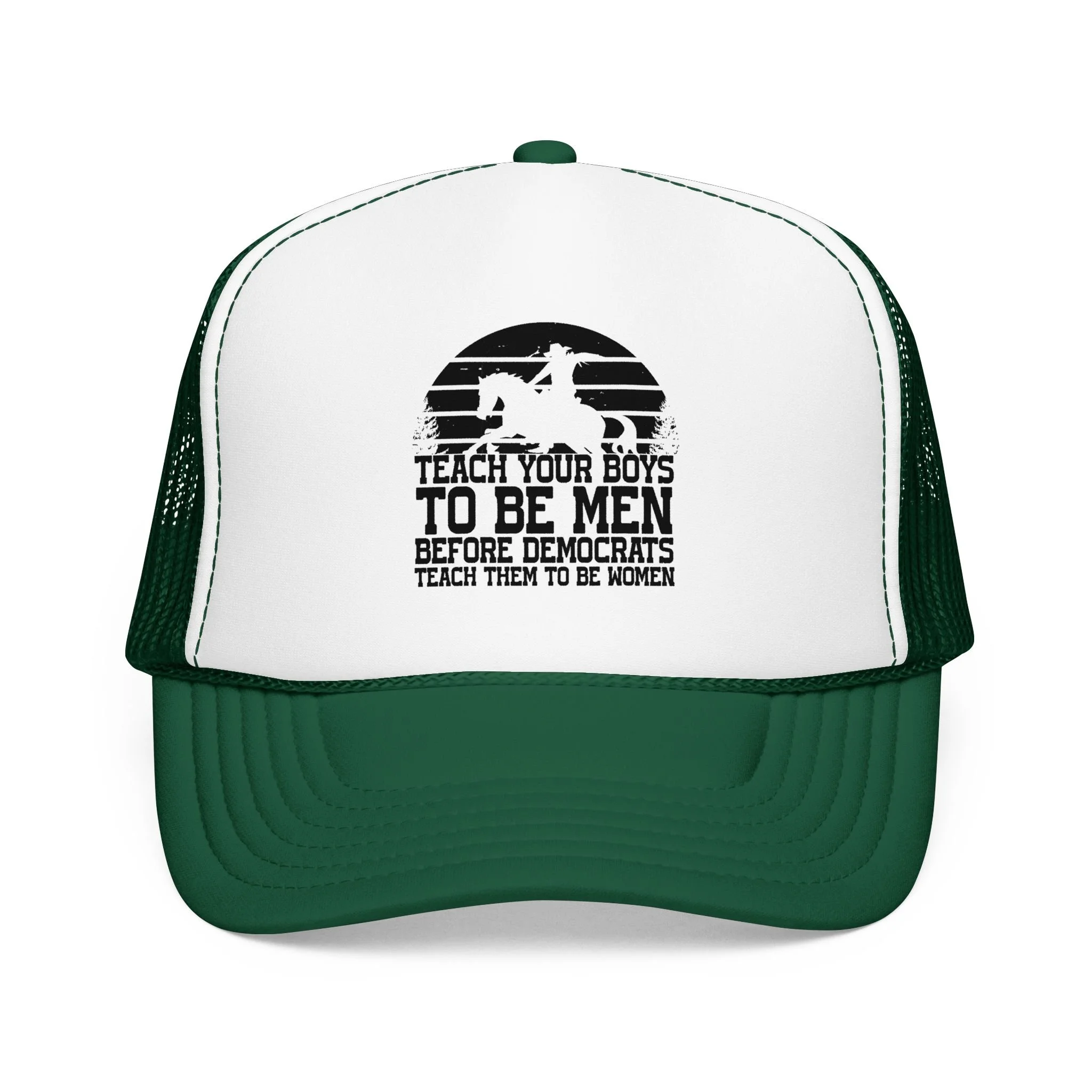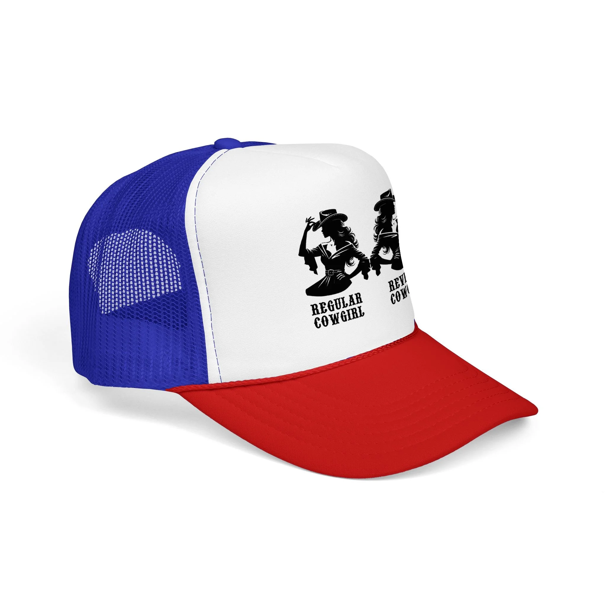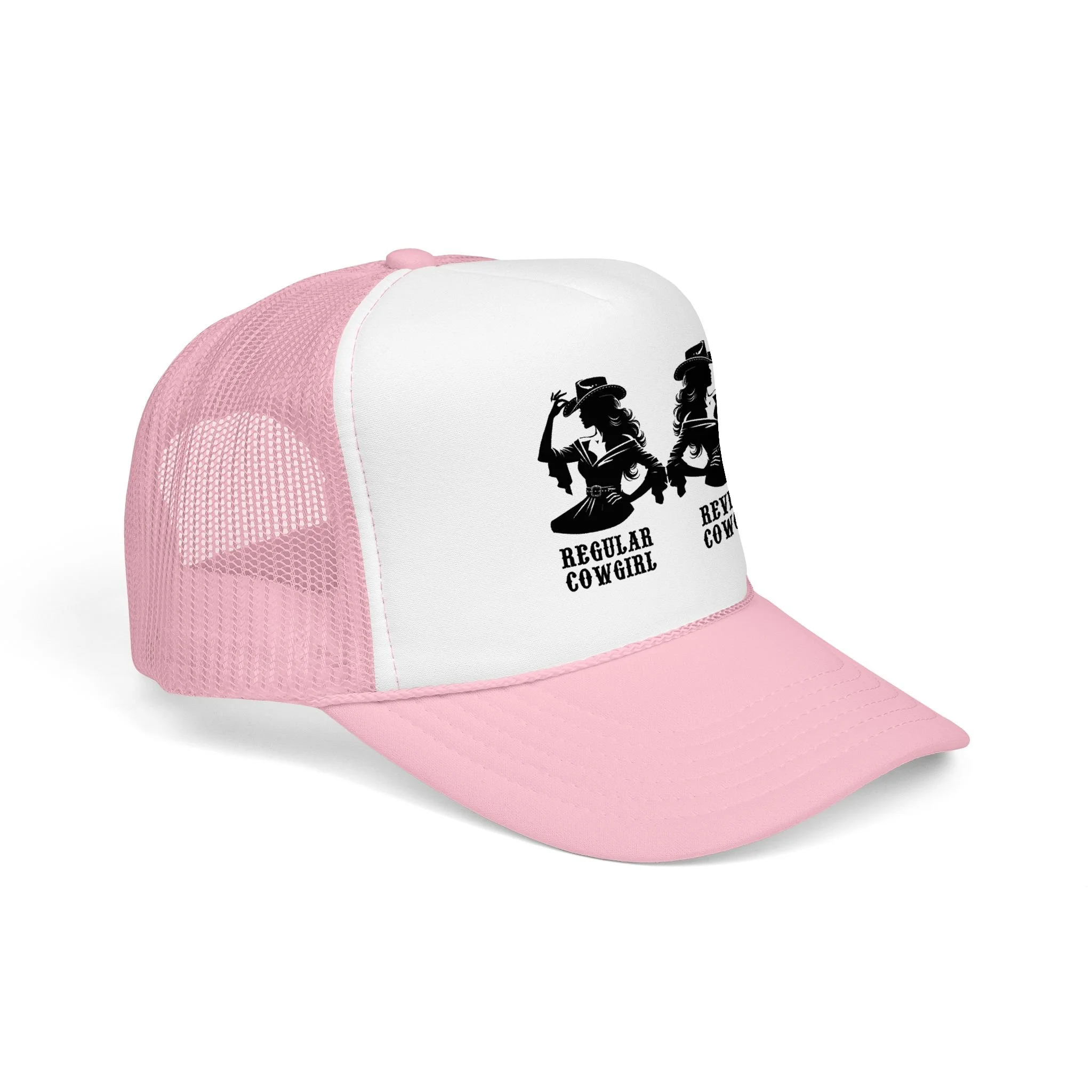 A rugged foam trucker hat that channels underground music energy and late-night jam sessions. The high-profile structured front holds a seamless foam panel where a distressed, dripping logo sits in stark white against black — bold without shouting. Breathable mesh keeps the back cool during long sets or summer shows. The pre-curved visor and adjustable snap let you dial the fit and tilt for stage-ready attitude or laid-back streetwear.