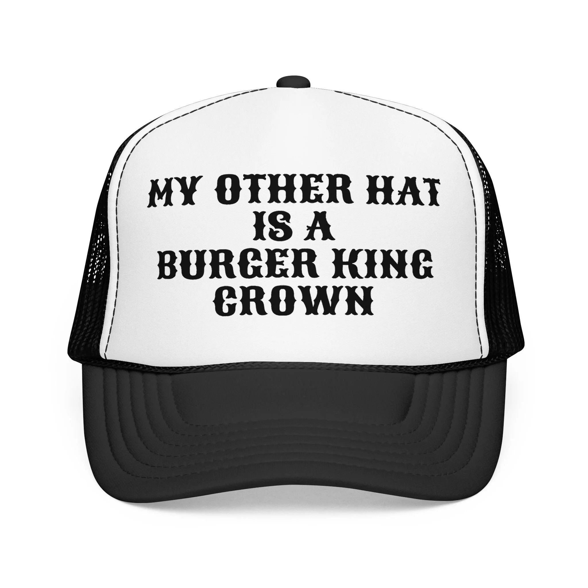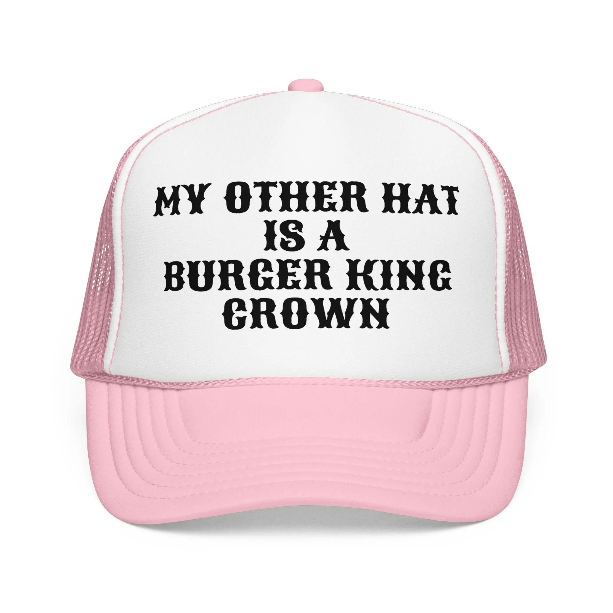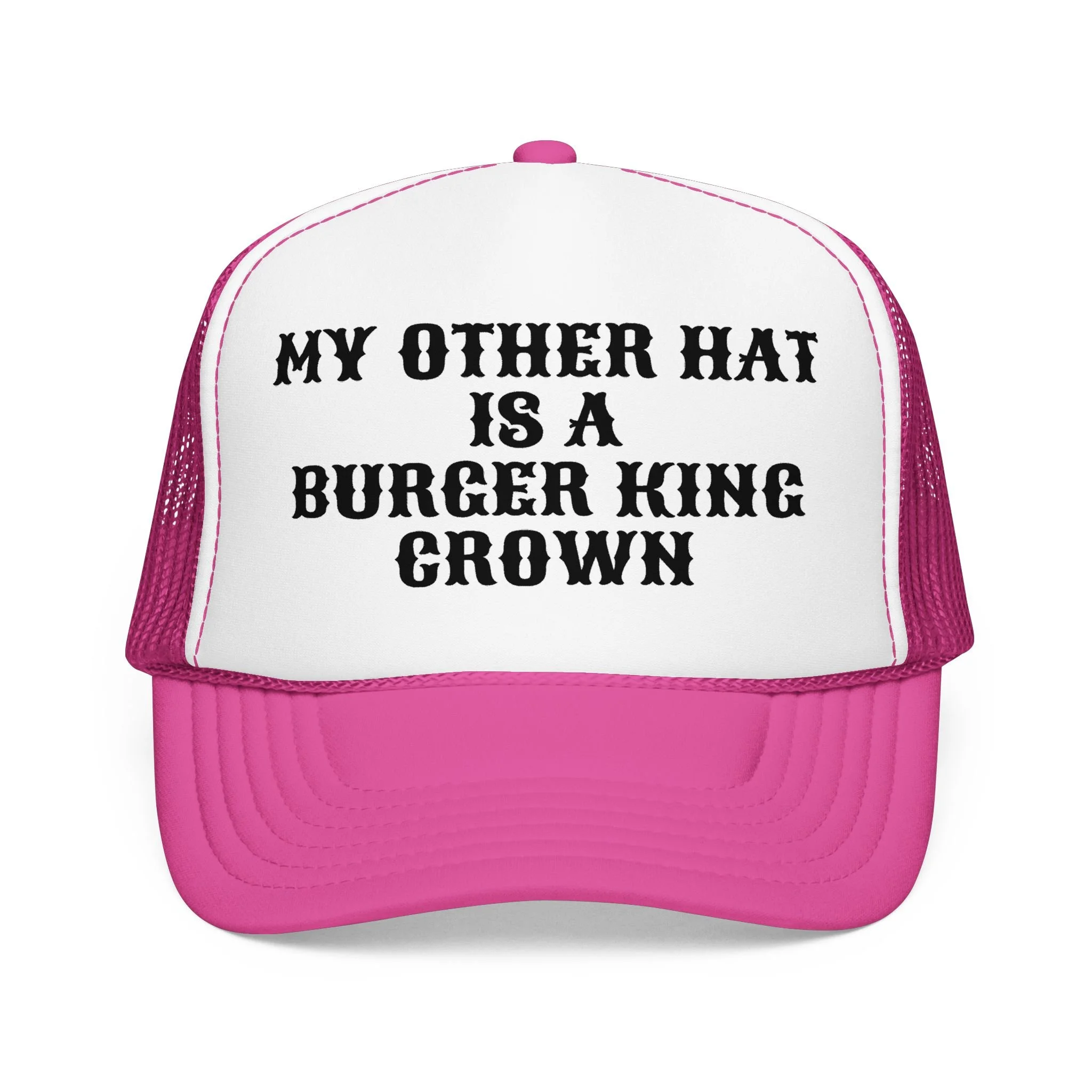 This foam trucker hat brings a playful, sassy vibe to casual days. The high-profile, seamless foam front showcases a bold pink script reading “Sorry about my husband” framed by delicate ornamental flourishes. A breathable mesh back keeps you cool while the structured five-panel shape and pre-curved visor keep the look sharp. Adjustable snap closure lets it sit comfortably whether you’re running errands, heading to a backyard barbecue, or breaking the ice at a girls’ night. It’s an easy, confident accessory that speaks with humor and attitude without shouting.