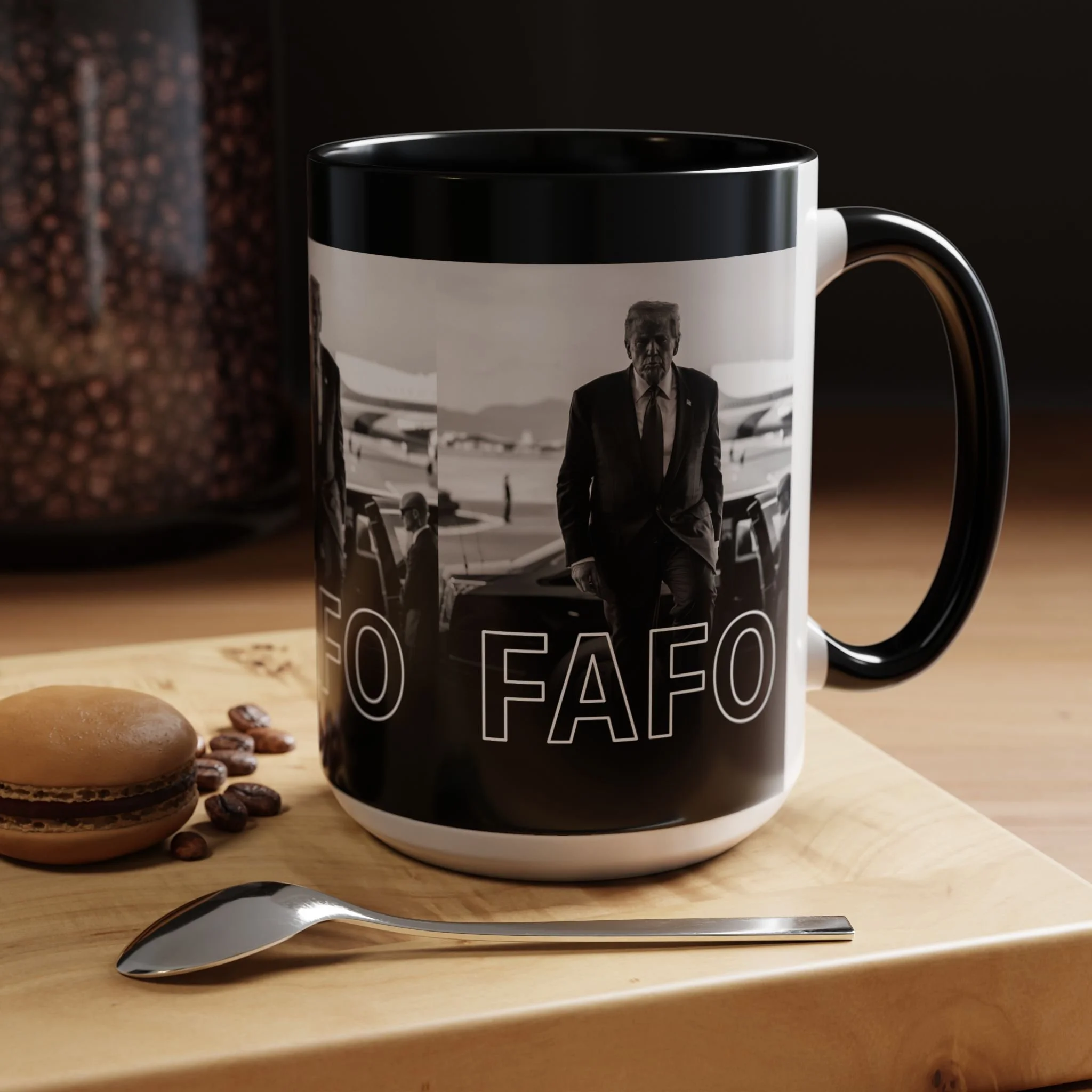 This ceramic accent mug brings bold contrast and a touch of attitude to your daily coffee routine. The glossy white exterior showcases a striking black-and-white photographic wrap with large. Comfortable C-shaped handle and two size options make it easy to reach for this mug at home, in a shared kitchen, or on an expressive desk. Durable, bright printing keeps the image crisp wash after wash, and safe, lead- and BPA-free materials give peace of mind for everyday use.