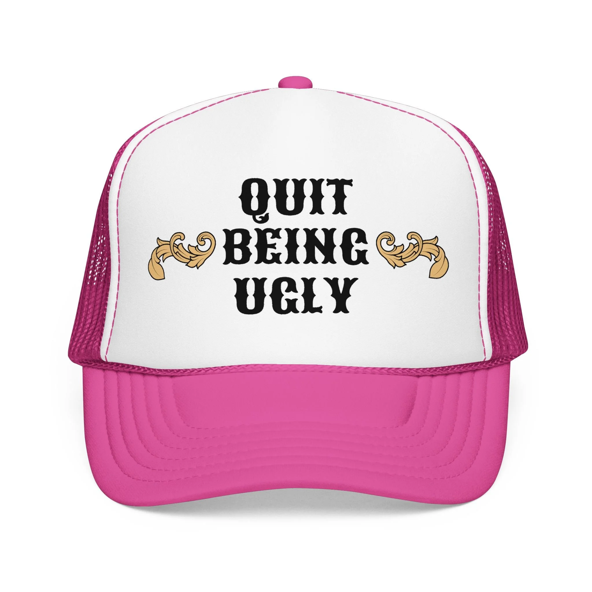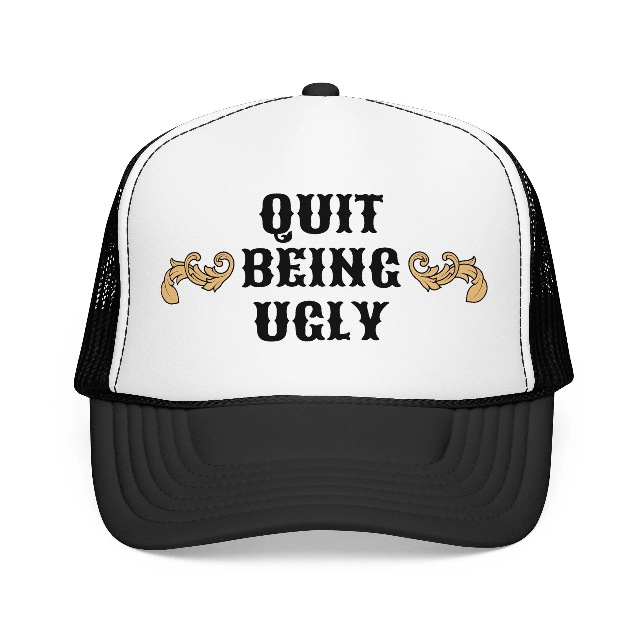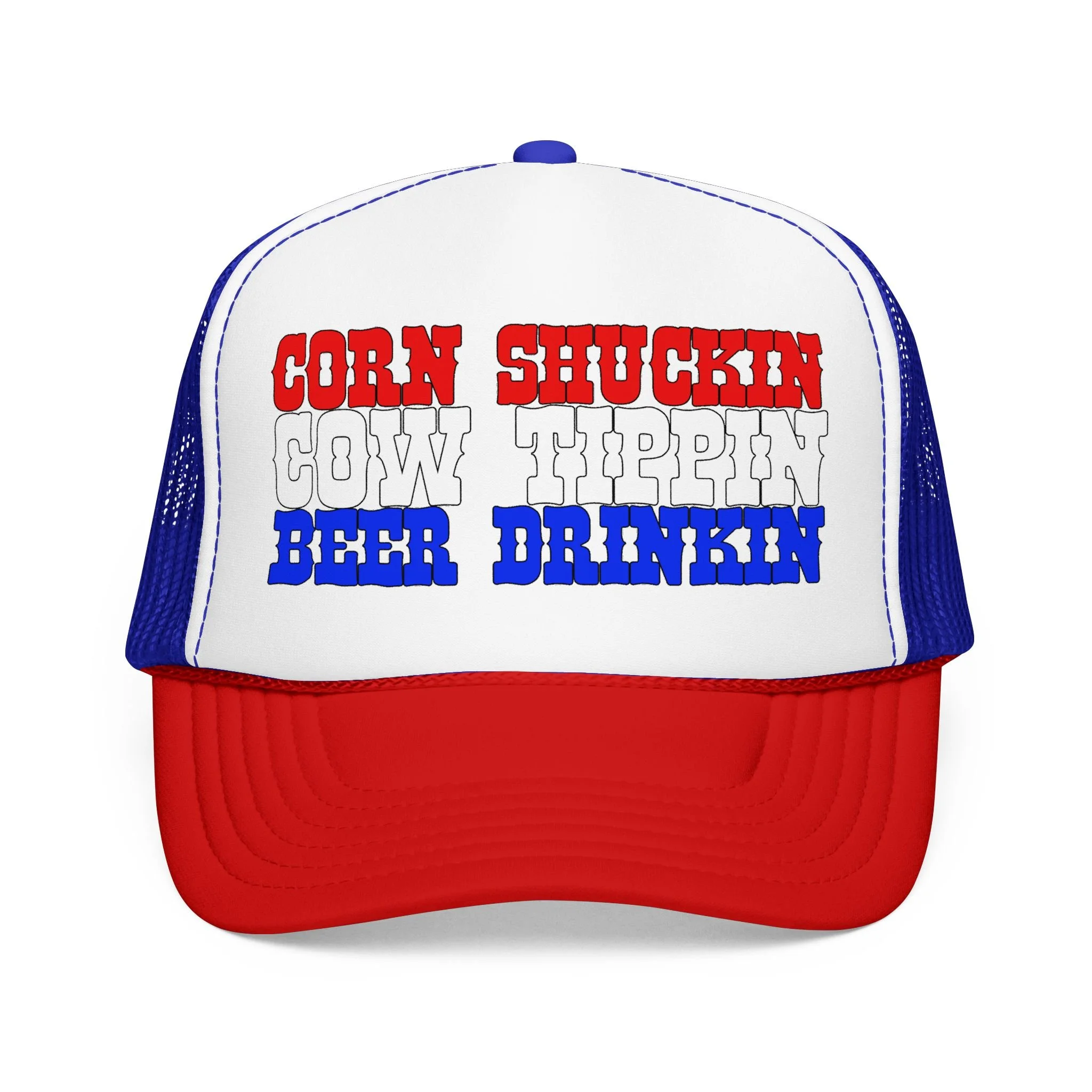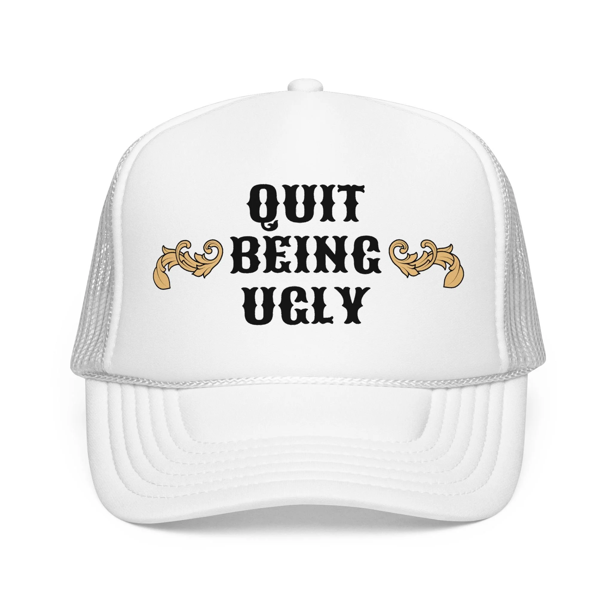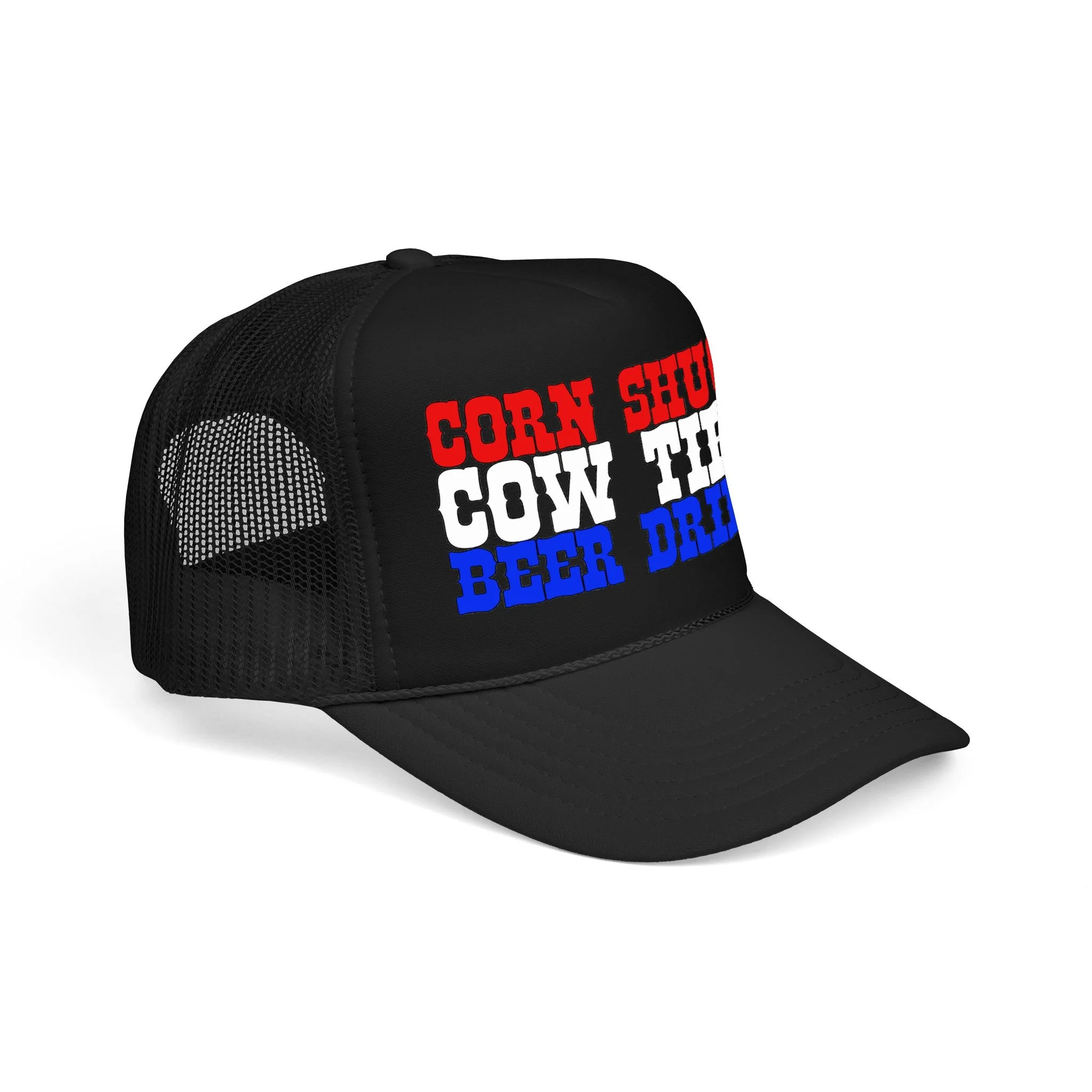 This foam trucker hat brings loud, playful attitude to your everyday wear. The high-profile, seamless foam front carries bold brown lettering that reads “YEE HAW OR GET YEETED,” making a cheeky statement whether you’re at a country show, a backyard bonfire, or cruising town on a sunny day. The structured five-panel build and laminated foam front keep the print crisp and upright, while the breathable mesh back and adjustable snap let you wear it all day without overheating. It’s a hat that leans into farm-to-festival energy — rowdy, lighthearted, and ready to be tossed on whenever you want to add a little mischief to your look.
