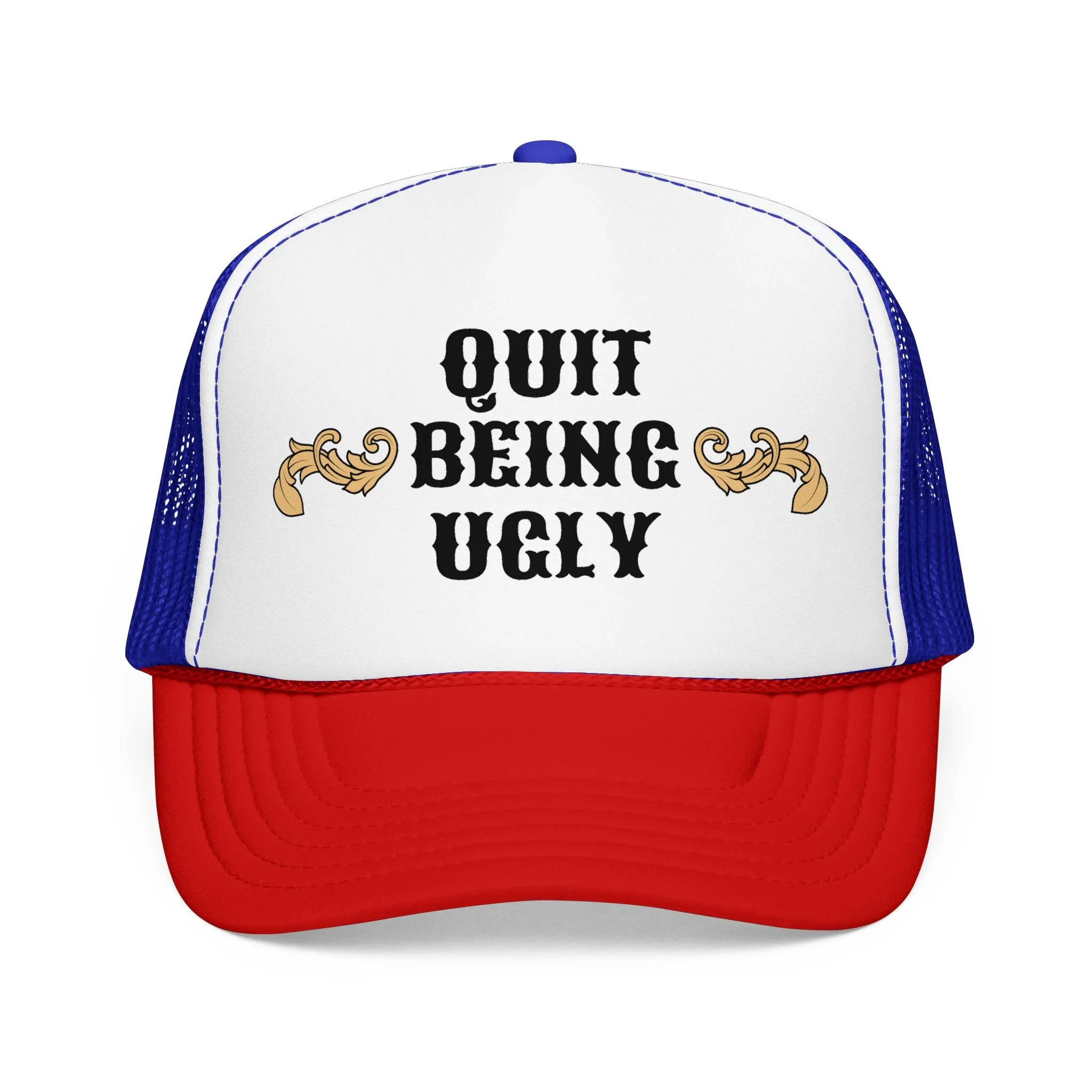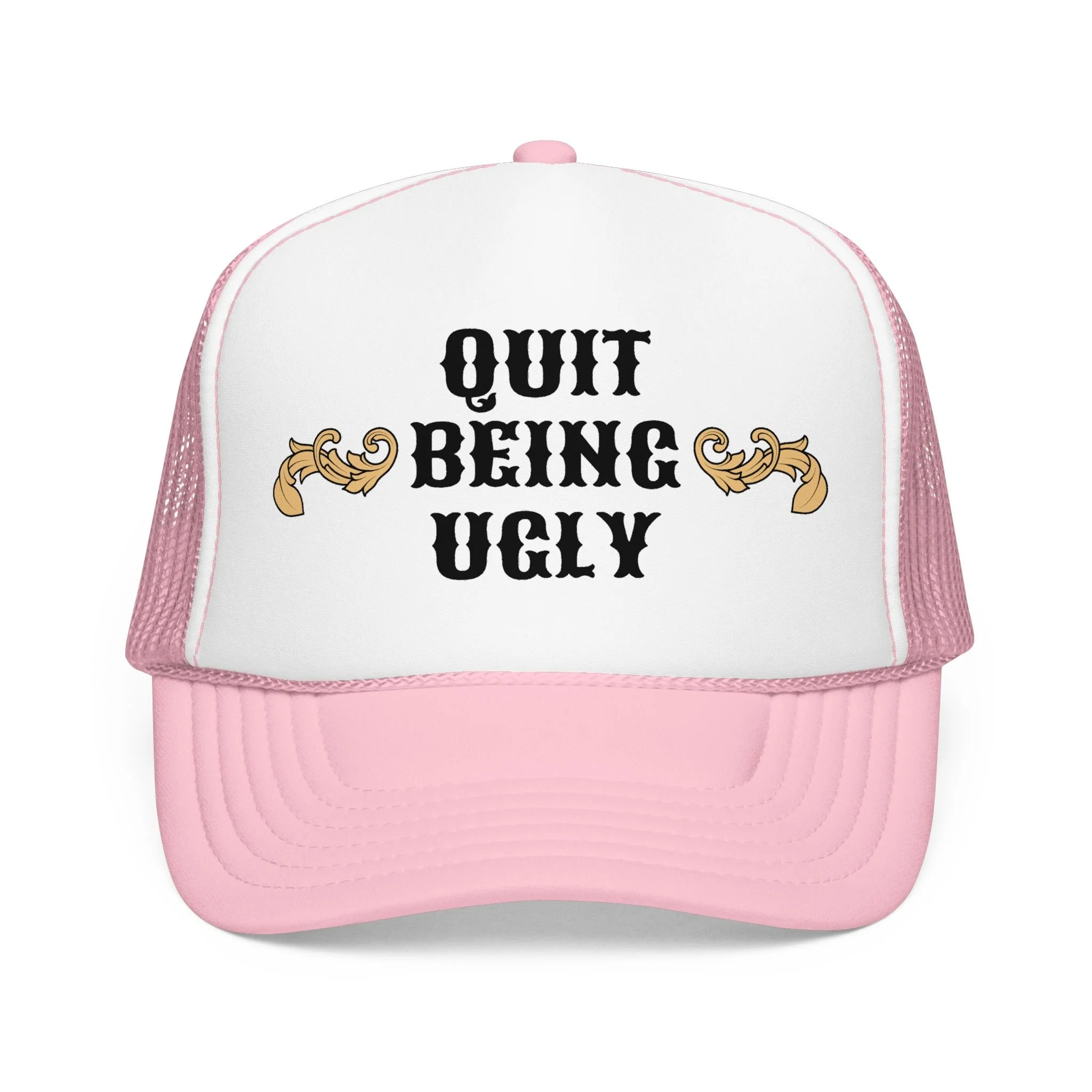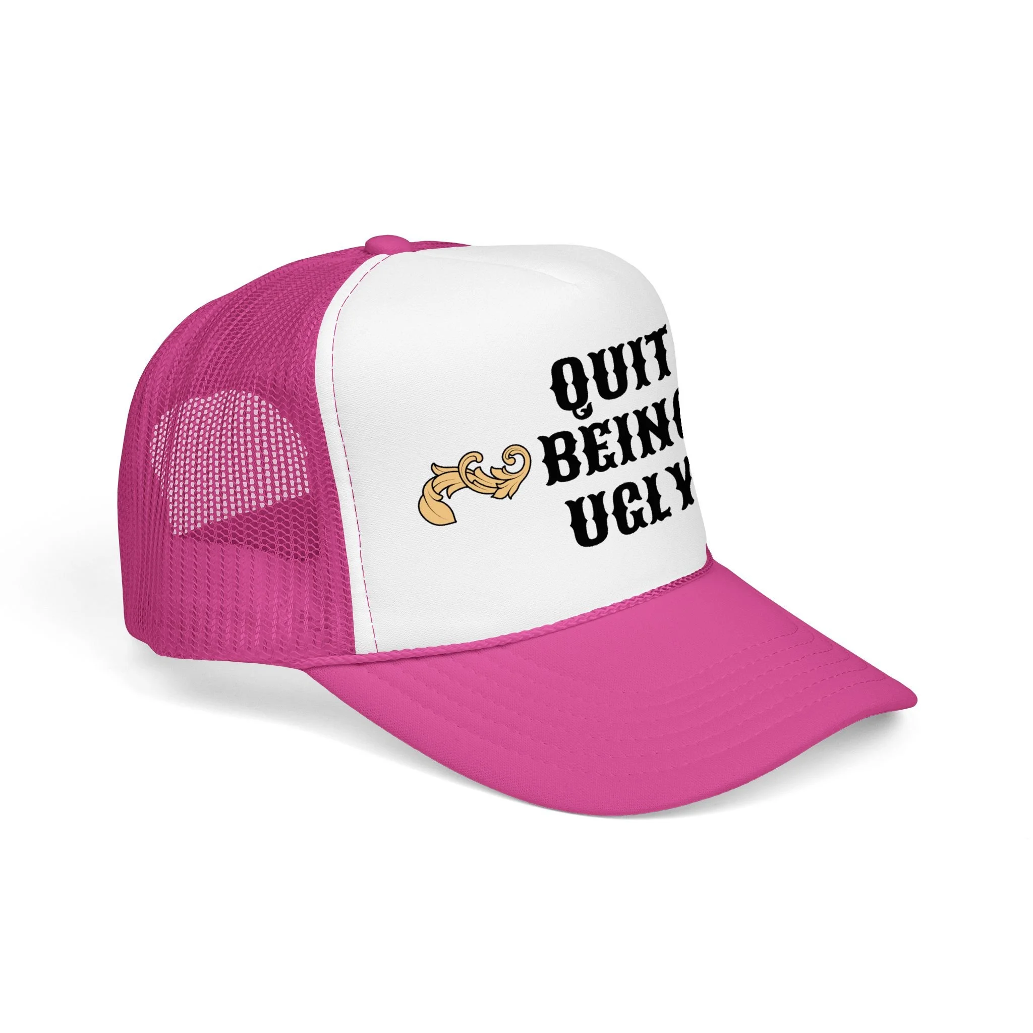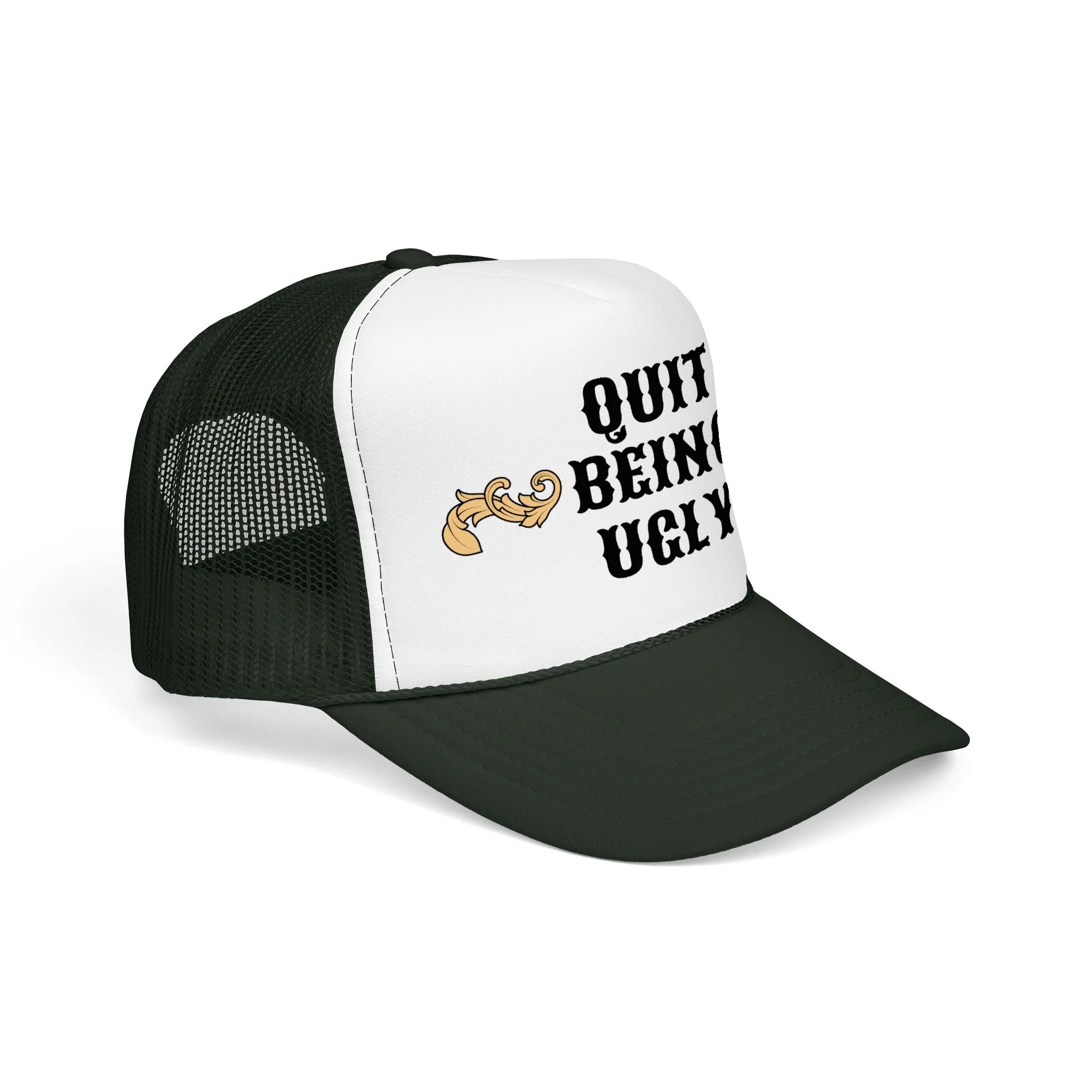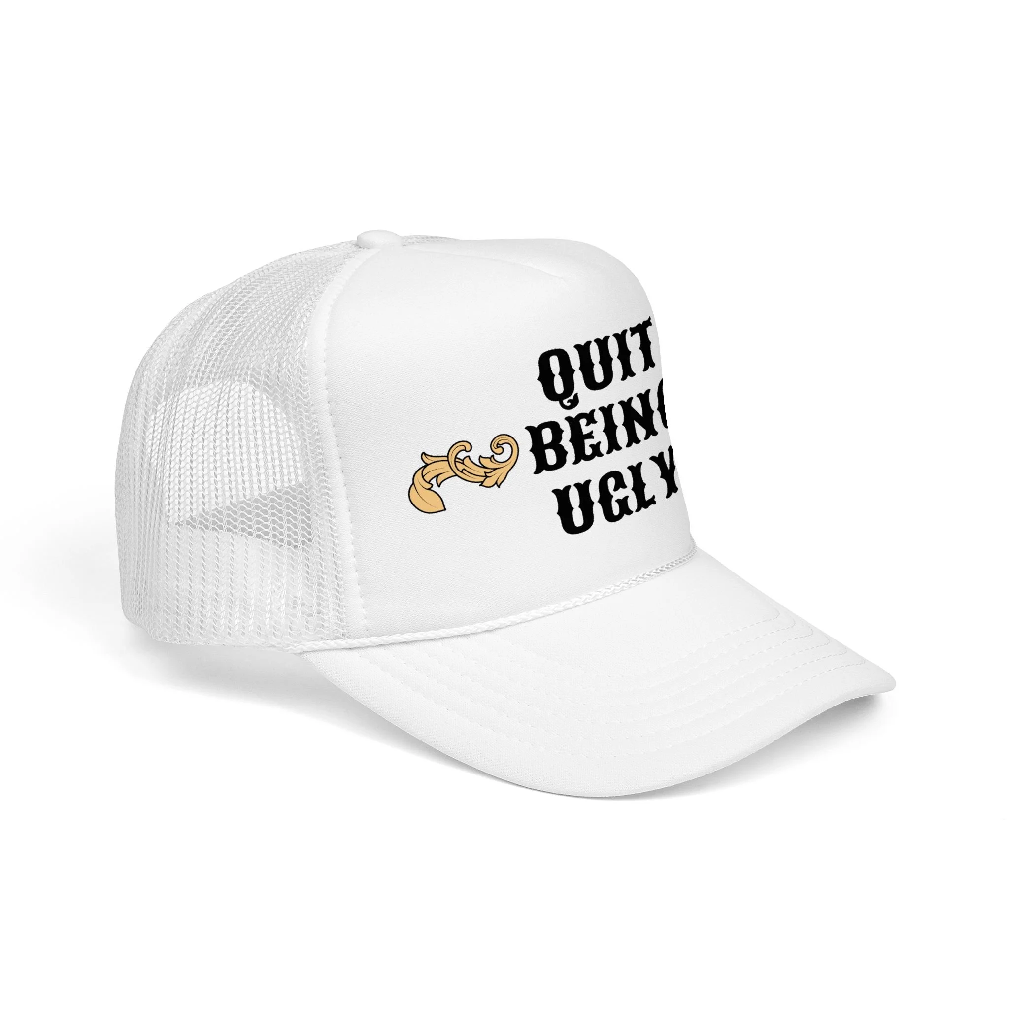 This foam trucker hat brings loud, playful attitude to your everyday wear. The high-profile, seamless foam front carries bold brown lettering that reads “YEE HAW OR GET YEETED,” making a cheeky statement whether you’re at a country show, a backyard bonfire, or cruising town on a sunny day. The structured five-panel build and laminated foam front keep the print crisp and upright, while the breathable mesh back and adjustable snap let you wear it all day without overheating. It’s a hat that leans into farm-to-festival energy — rowdy, lighthearted, and ready to be tossed on whenever you want to add a little mischief to your look.